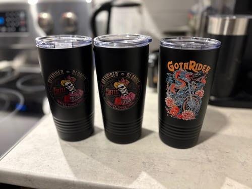 Qualité : nos designs sont imprimés sur des gobelets en acier inoxydable de haute qualité avec une finition en poudre pour offrir une durabilité maximale contre les dommages. Nos gobelets sont imprimés au Canada.