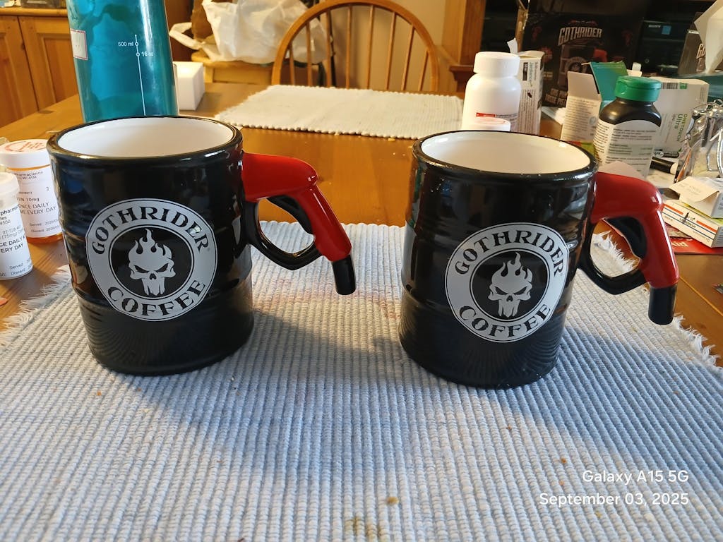 Looking for a coffee mug that truly revs your engine? Look no further than the GothRider Gas Pump Mug! This 14-plus ounce mug is perfect for any car or motorcycle enthusiast. The unique design is based on a gas pump, and features a black and silver finish that is sure to turn heads. Whether you're a gearhead or just appreciate great design, the GothRider Gas Pump Mug is sure to rev up your coffee routine!